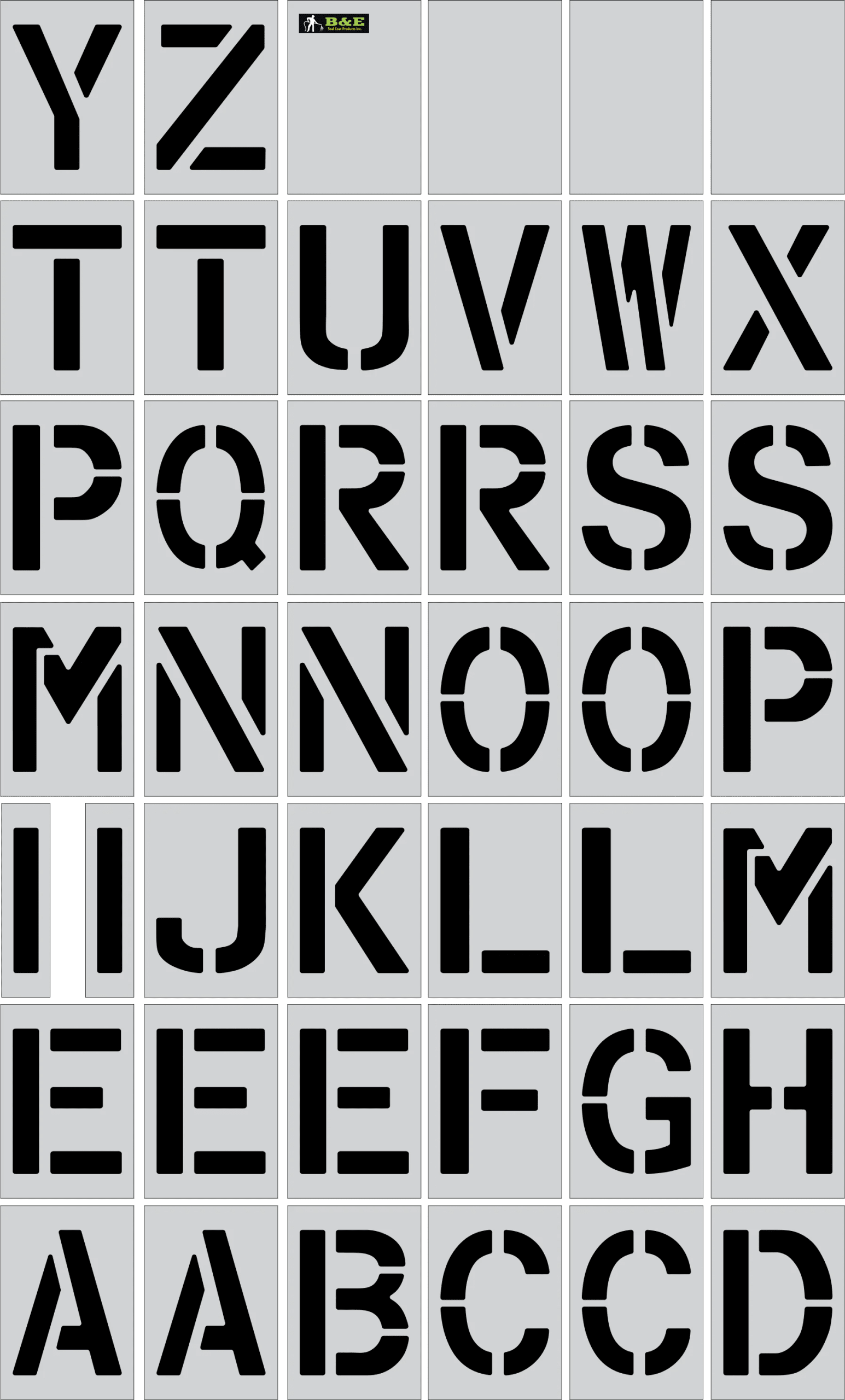 - 43 pc set of Alphabet stencils (A-Z), 4 spacers, and additional letters (A,C,E,E,I,L,M,N,O,P,R,S,T)