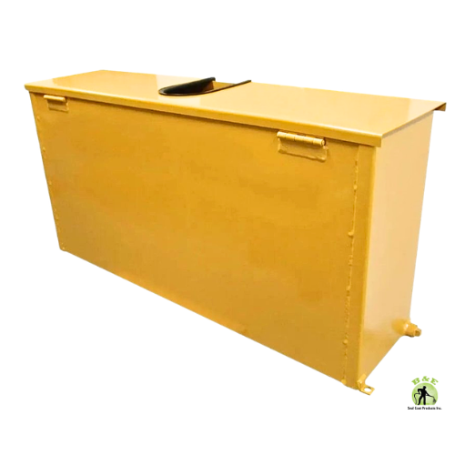 The Seal Rite 41 Inch Seal Coat Brush Box with Drain Plug  is a heavy-duty, on-trailer storage solution designed to securely hold sealcoating brushes and squeegees up to 36 inches in length. Constructed from durable 16-gauge painted steel, this box is built for professional pavement maintenance crews who need organized, weather-resistant storage directly on their trailer tongue.