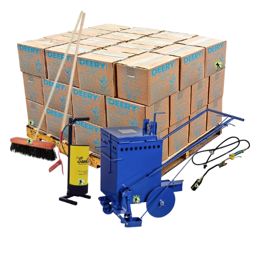 The kit includes (45) 30 lb boxes of Deery Super Stretch crack sealant, delivering long-term flexibility and strong adhesion in standard working cracks. With bulk material on hand, crews can move efficiently across large surfaces without frequent reloads.